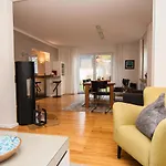 Boendet har utsikt över trädgården, en terrass samt soffa. Det finns också snabbt internet och TV. I badrummet finns även ett badkar och en dusch.